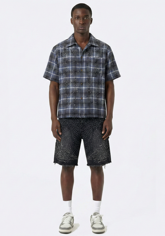 Allover Rhinestone Denim Shorts Black (Pre-order)