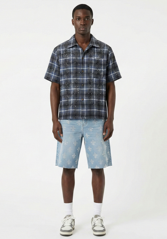 Allover Rhinestone Denim Shorts Grey (Pre-order)