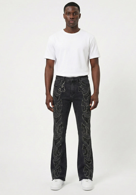 Flame Studded Denim Jeans Black (Pre-order)