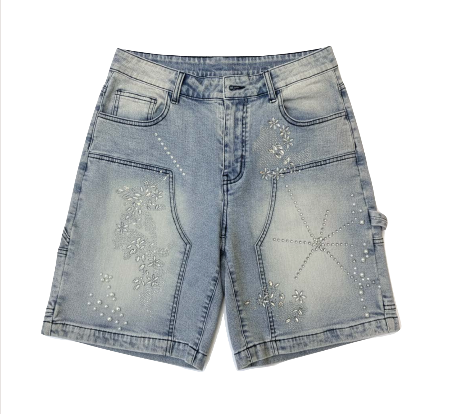 Mixed Motif Rhinestone Denim Shorts Black (Pre-oder)