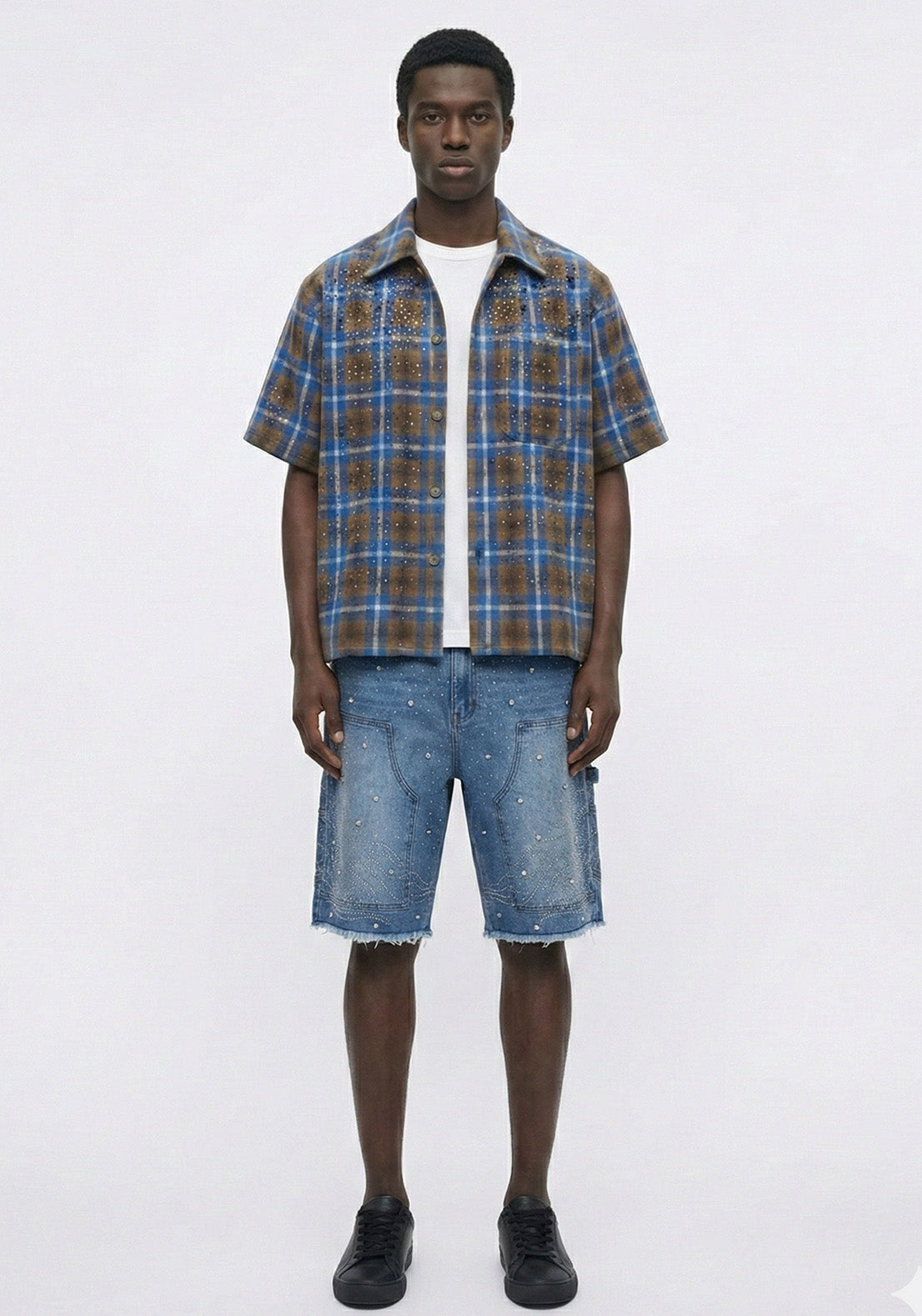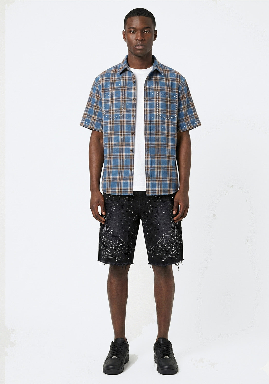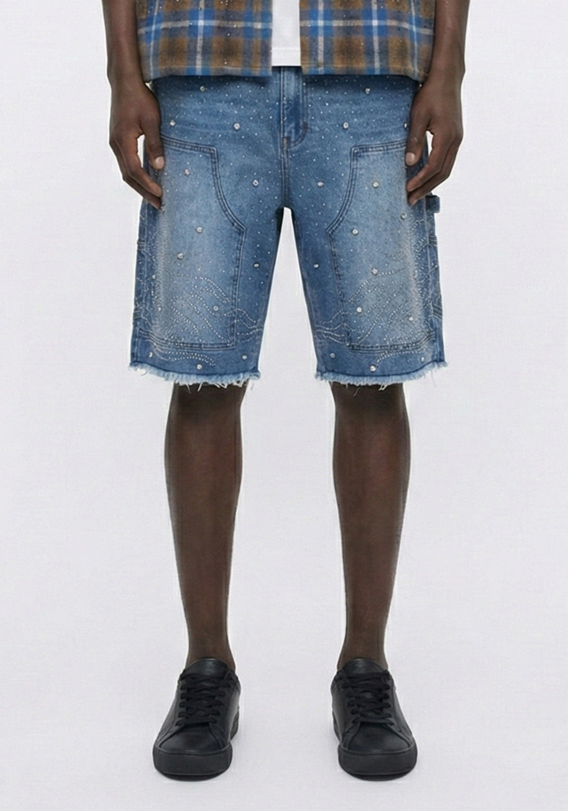 Starry Flame Rhinestone Denim Shorts Blue (Pre-order)
